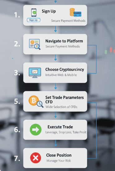 Trading cryptocurrency CFDs on Markets.com involves a straightforward process. Here's a step-by-step guide: