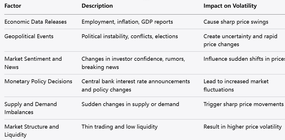 Supply and demand imbalances: Sudden shifts in supply or demand can cause sharp price movements.