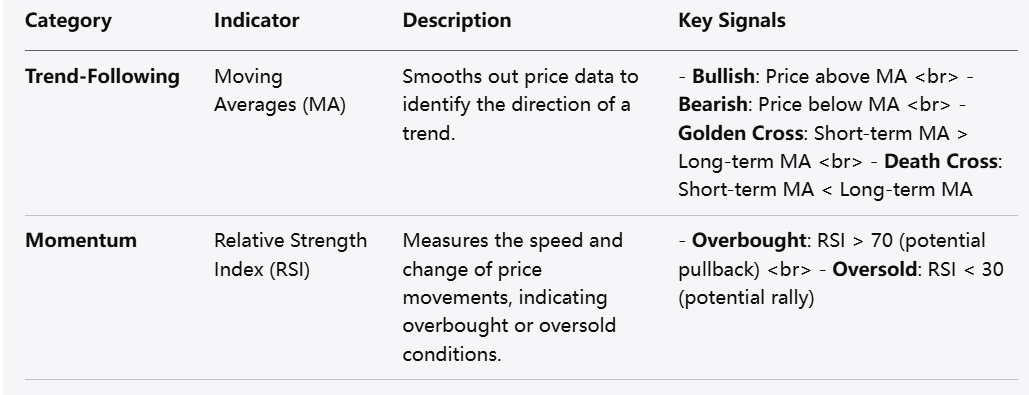 Trend-Following Indicators (e.g., Moving Averages): These help confirm the direction and strength of a trend. A Moving Average (MA) smooths out price data to create a single flowing line. A "50-day MA," for example, shows the average closing price over the last 50 days. When the price is above the MA, it's generally considered a bullish signal, and when it's below, it's bearish. Traders often use two MAs (e.g., a 50-day and a 200-day) and look for "crossovers." A "golden cross" (short-term MA crosses above long-term MA) is a bullish signal, while a "death cross" (short-term MA crosses below long-term MA) is bearish.