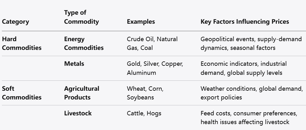 Commodity CFDs can be broadly classified into two categories: hard commodities and soft commodities. Understanding these classifications helps investors select appropriate products for their trading strategies.