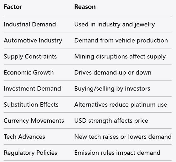 Several key factors can significantly influence the price of platinum, and understanding these factors can provide valuable insights for potential investors: