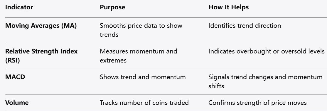 Volume: Indicates the number of coins traded; high volume often confirms trends.