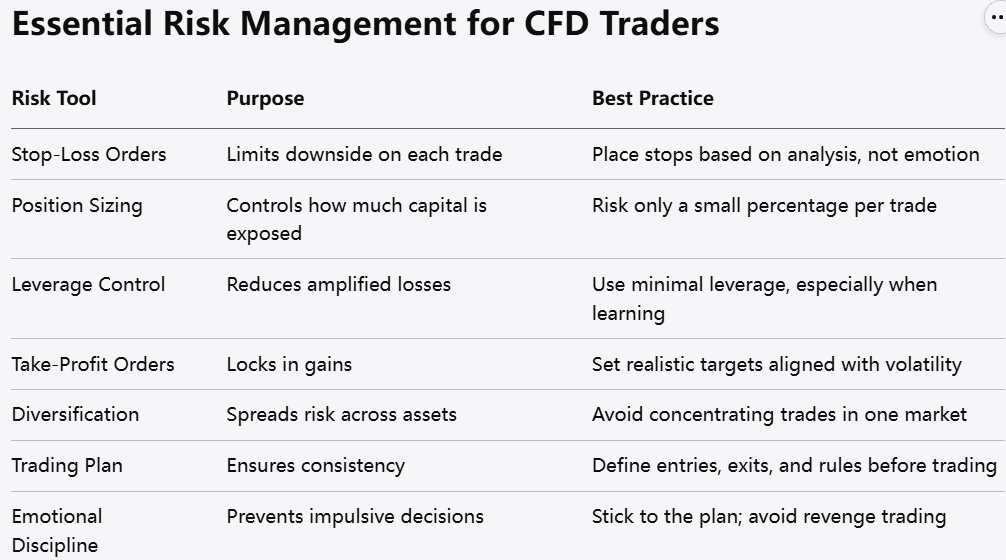 For beginners, CFDs can be suitable only if you fully understand how they work and are prepared for the heightened risk. They are complex instruments, and regulatory bodies often warn that a high percentage of retail accounts lose money when trading CFDs. If you choose to use them, start small, use strict stop‑losses, and avoid trading during highly volatile market events until you are more experienced. Also ensure that your broker is well regulated, transparent with pricing, and offers strong risk‑management tools.