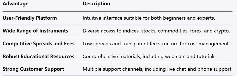 The broker offers access to a diverse array of financial instruments, including indices, stocks, commodities, forex, and cryptocurrencies, allowing for effective portfolio diversification.
