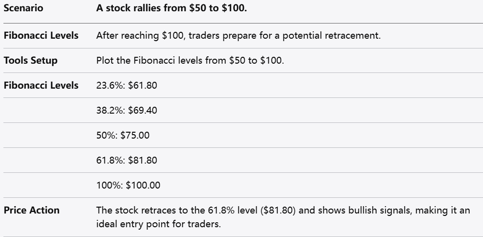 Price Action: The stock retraces to the 61.8% level ($81.80) and shows bullish signals, making it an ideal entry point for traders.