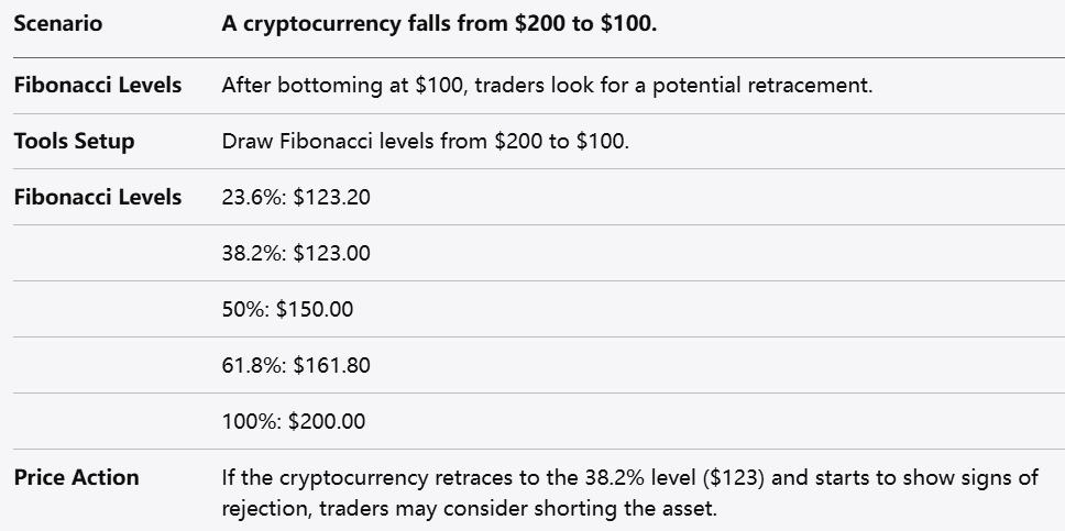 Price Action: If the cryptocurrency retraces to the 38.2% level ($123) and starts to show signs of rejection, traders may consider shorting the asset.