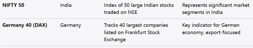 India’s NIFTY 50 serves as a critical market indicator with 50 leading firms, and Germany’s DAX tracks the 40 largest companies in Europe, each providing valuable insights into their respective economies.