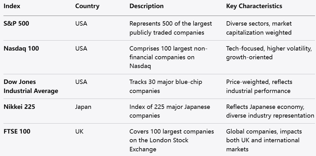 Diversification: Instead of investing in individual stocks, trading indices allows you to spread risk across numerous companies. For example, a trader investing in the S&P 500 gains exposure to 500 different companies, which mitigates the impact of poor performance from any single stock.