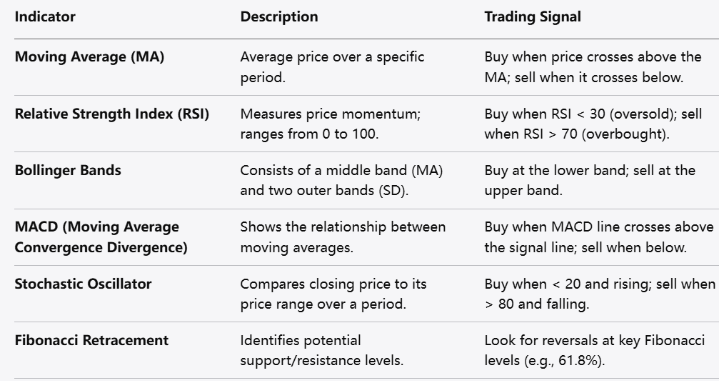 Technical analysis involves using charts and indicators to analyze price movements and identify potential trading opportunities. Common indicators include moving averages, Relative Strength Index (RSI), and Bollinger Bands.