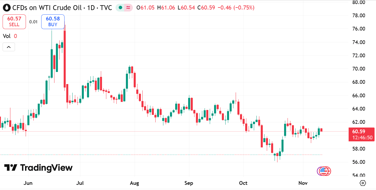 WTI trades at $60.75: West Texas Intermediate (WTI) crude oil is a key benchmark for oil prices in the United States and plays a significant role in global energy markets.